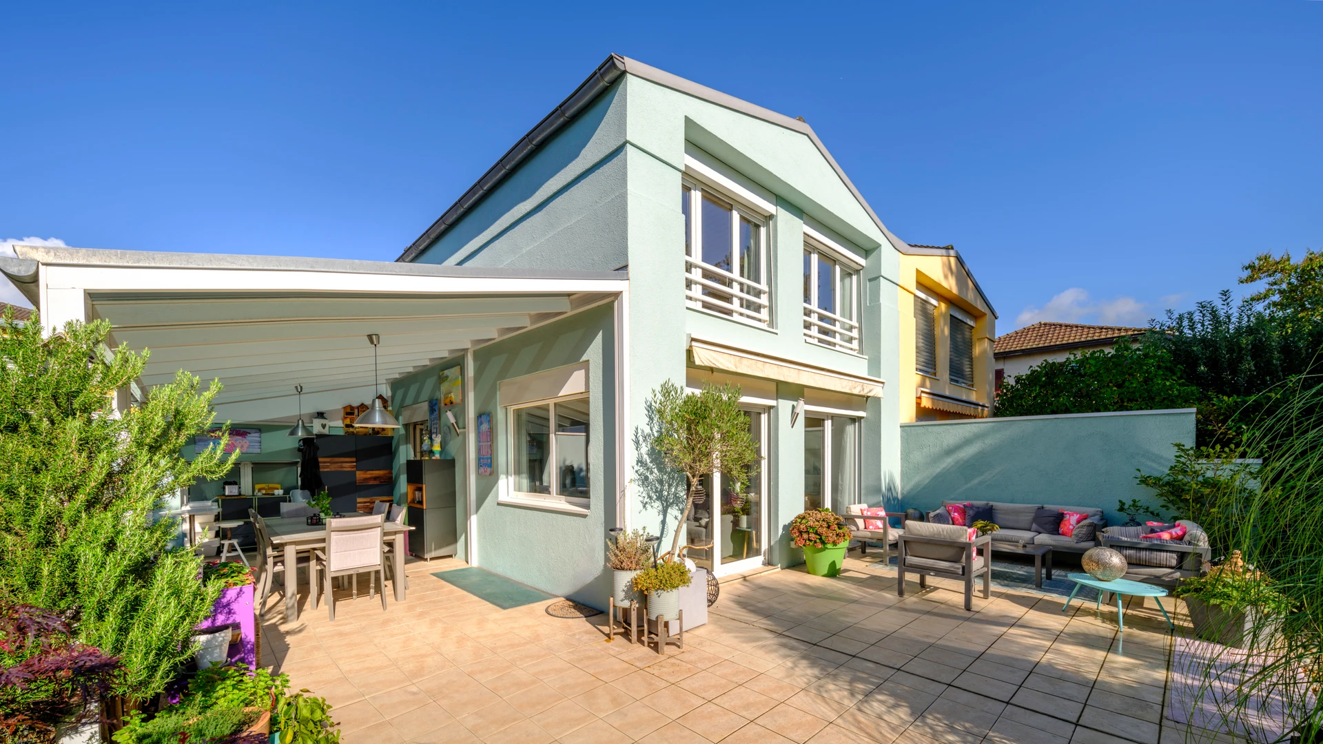Superbe villa de 380m² sur un terrain de 1200m² dans le quartier résidentiel de Vufflens. Cette propriété d'exception offre une vue imprenable sur le lac Léman et les montagnes. Caractéristiques principales : entrée majestueuse, grand séjour avec cheminée et accès à la terrasse de 100m², cuisine professionnelle entièrement équipée, bureau, 4 chambres à coucher dont une suite parentale avec dressing et salle de bains en marbre, 2 autres salles de bains, sauna, cave à vin, garage double, jardin paysager de 800m². Domotique complète, système de sécurité, panneaux solaires et pompe à chaleur. À 5 minutes du centre-ville et des écoles.